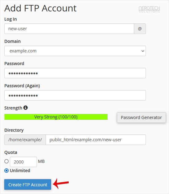 You can access the FTP account using the cPanel login details, which gives you full access to the home directory. However, if you want to create an FTP user account for a specific directory, you can create a separate FTP account.